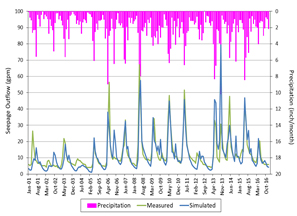 - Model accurately reproduced the recorded seepage rates for the monitoring period